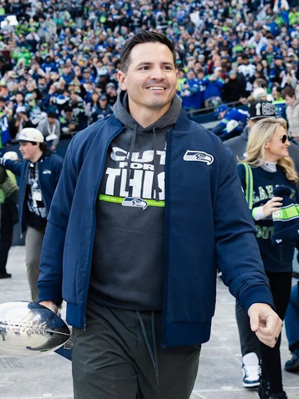 Recreation – Coach Mike Macdonald Super Bowl LX Champions Parade Seattle Seahawks Navy Full Zip Bomber Jacket For Sale