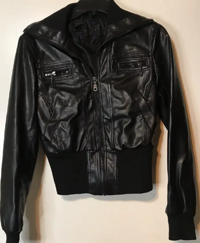 Buy Now Miley Cyrus Max Azria Crop Black Leather Jacket