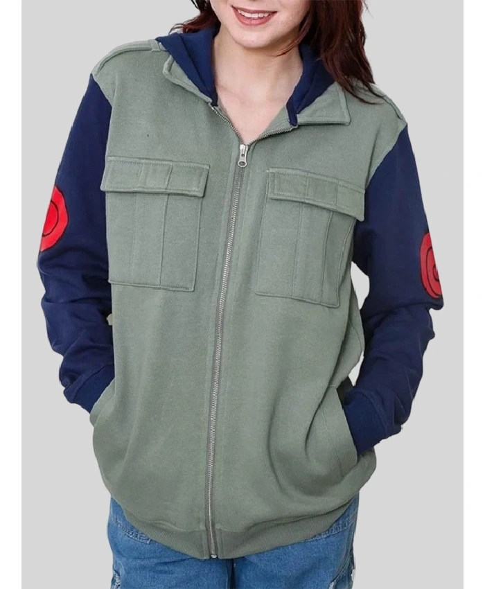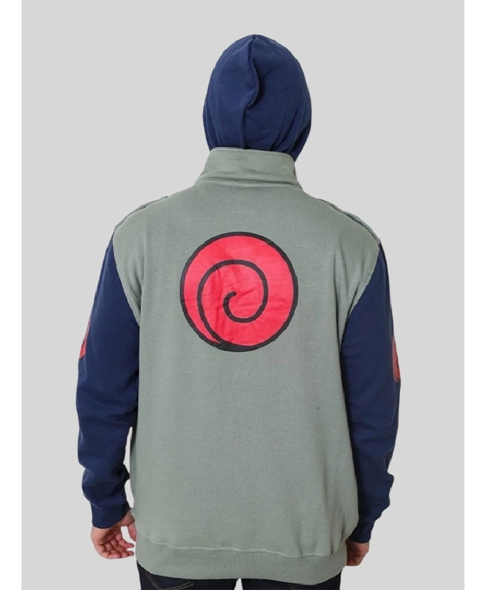 Naruto Kakashi Hatake Cosplay Green and Navy Full-Zip Hoodie For Men and Women