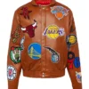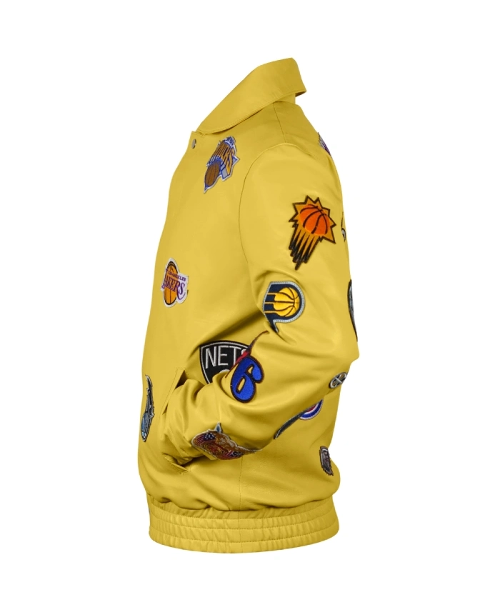 Coming back to this lovely jacket it symbolizes this glorious tournament by featuring the logo of every participating team. Beyond that, this jacket is also seen as a medium to celebrate this successful tournament. Moreover, if we analyze the design the NBA Teams Jeff Hamilton Collage Leather Jacket is crafted with genuine leather that enhances its bold and robust style. Besides that, this jacket comes in a yellow color tone which is seen as an eye popping element. This is something every NBA fan should have as you might own outfits regarding your favorite team but this outerwear honors the tournament as a whole.