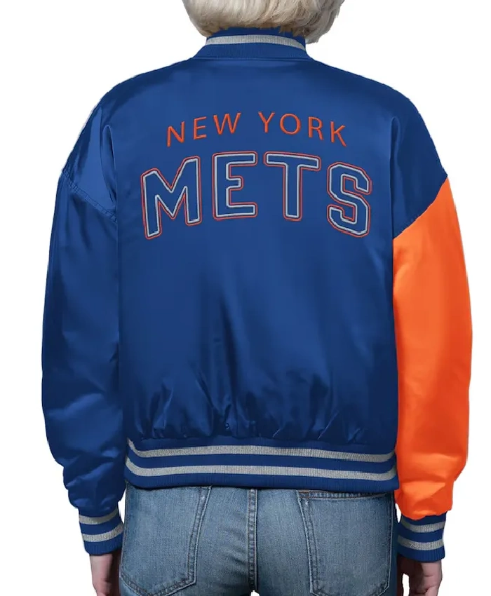 New York Mets Offside Full-Snap Royal and Orange Satin Jacket