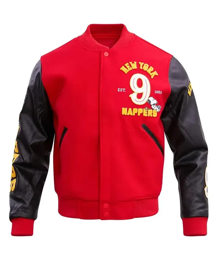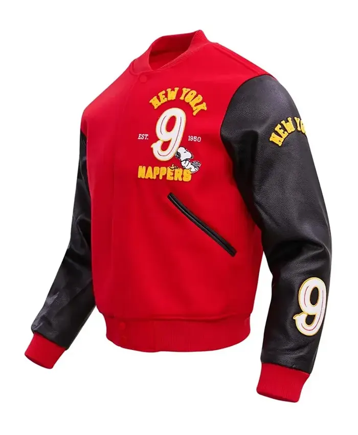 Peanuts Snoopy New York Nappers Full-Zip Red and Black Varsity Jacket