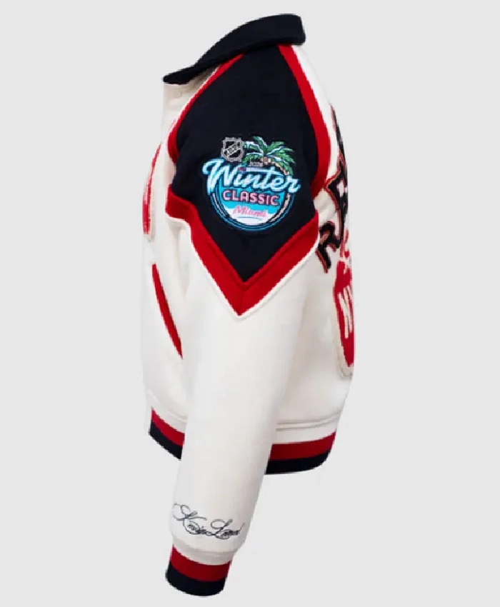 Shop NHL Winter Classic 2026 Miami Florida New York Rangers White Wool Varsity Jacket For Sale