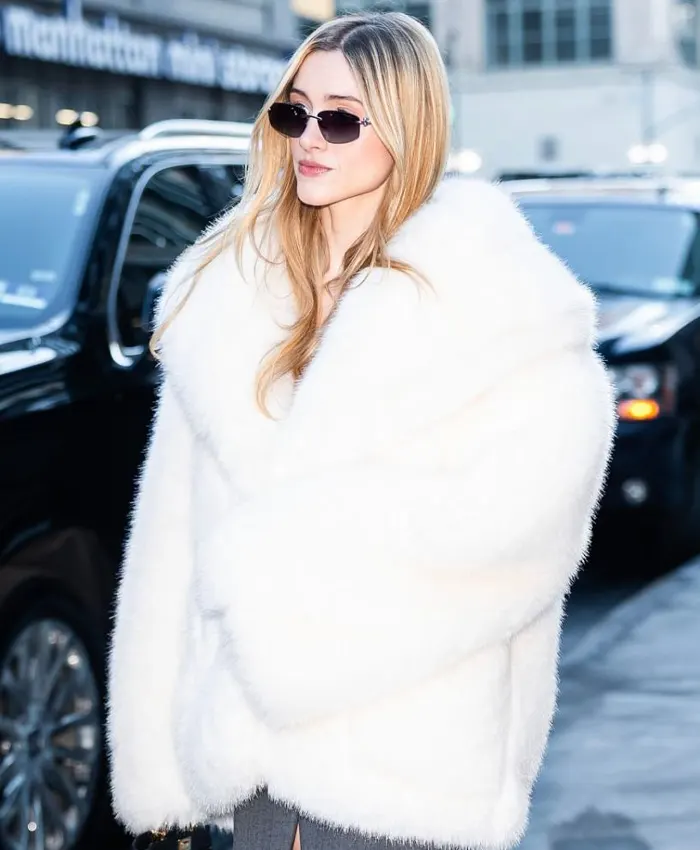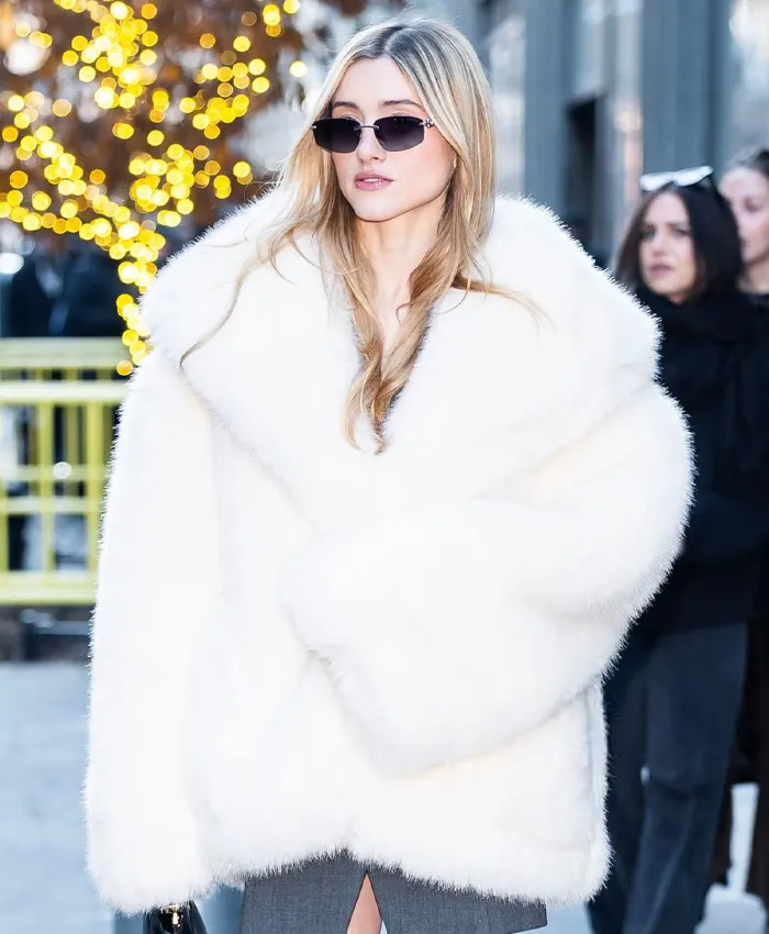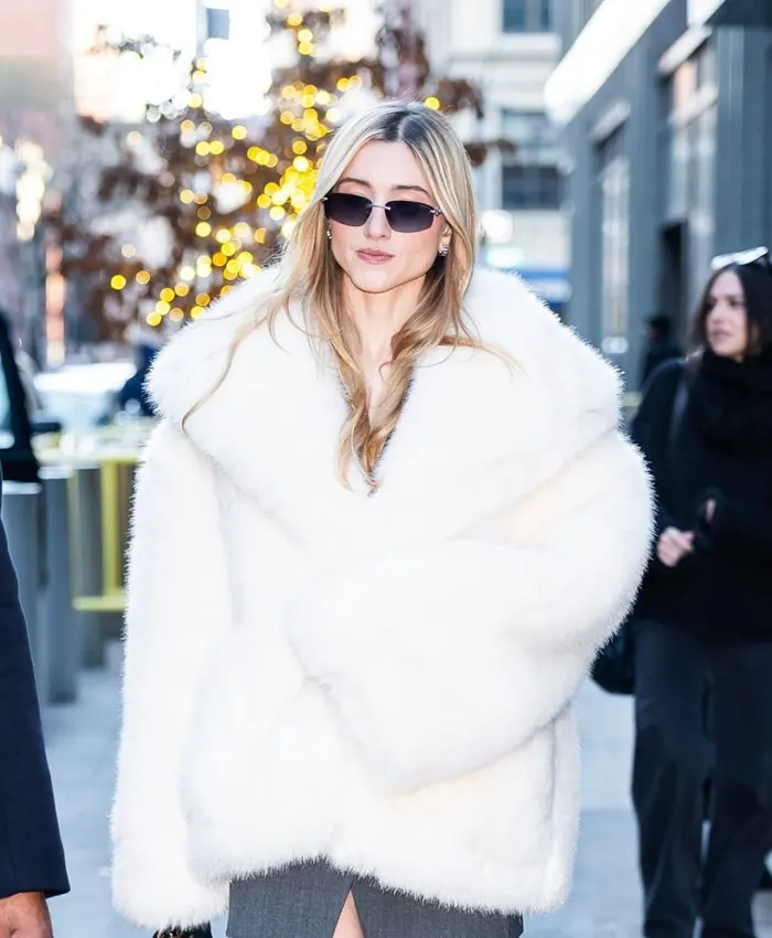 NY Natalia Dyer Street Style White Fur Jacket