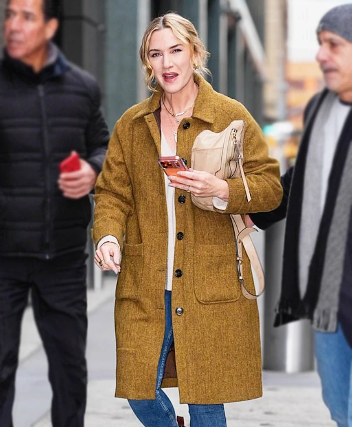 New York City 2025 Kate Winslet Button-Up Long Coat