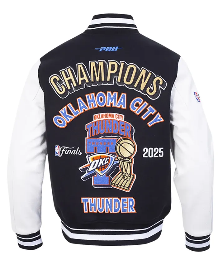 OKC Thunder 2025 Champions Black and White Varsity Jacket