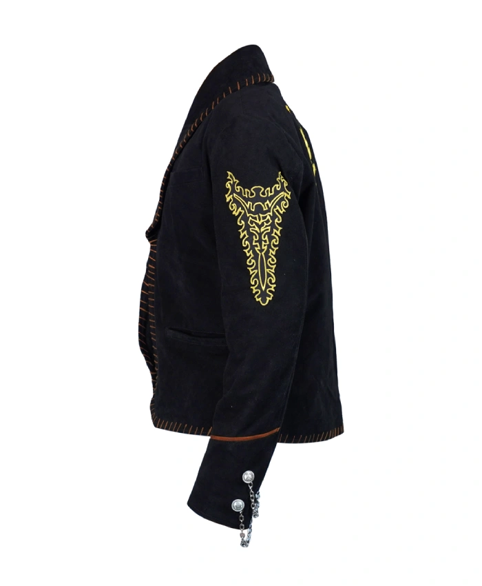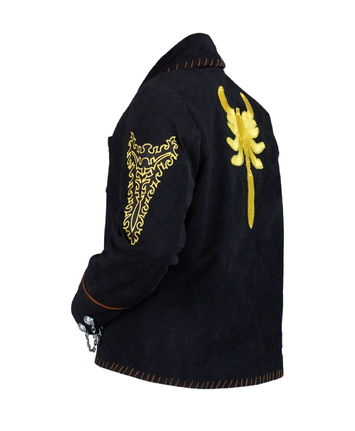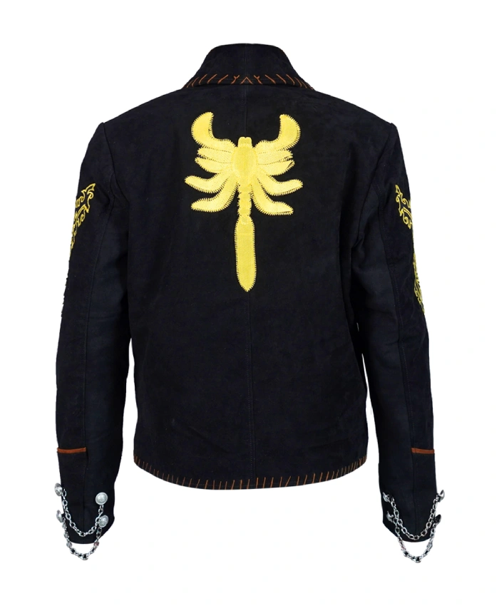 Moving ahaead, lets explore the design and assess why its a must have for you. The Antonio Banderas Once Upon a Time in Mexico El Mariachi Black Jacket is fashioned with suede leather that grants a bold and elegant style. Beyond that, this outfit features a black color tone that enhances its bold look. It also complements the golden scorpion design on the back. Moreover, looking at the specs this ensemble comes with full length sleeves and a front and inside pocket adding a nice layer of style and comfort. If you are worried about the fit than the good news is that the size chart is there to help. Additionally, at the same time you can also customize this ensemble so you can look bold and confident.