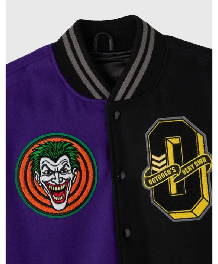 October’s Very Own 2026 Batman x The Joker Split Black and Purple Varsity Jacket