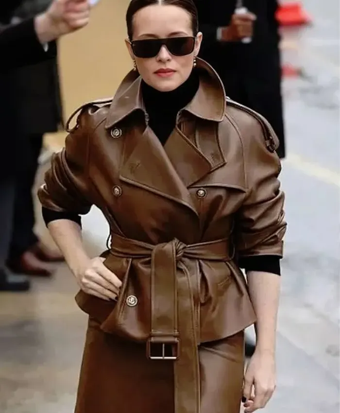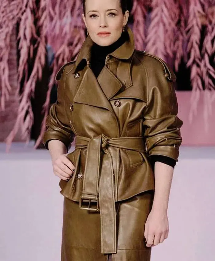 PFW Claire Foy Brown 2026 Leather Jacket