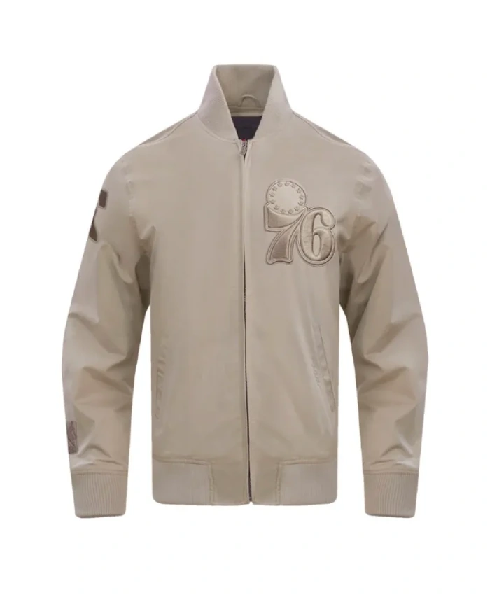Neutral Philadelphia 76ers Full-Zip Twill Cotton Jacket