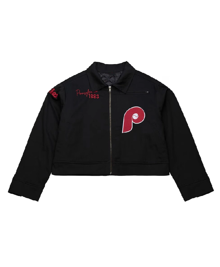 Philadelphia Phillies Black Mechanic Cropped Jacket