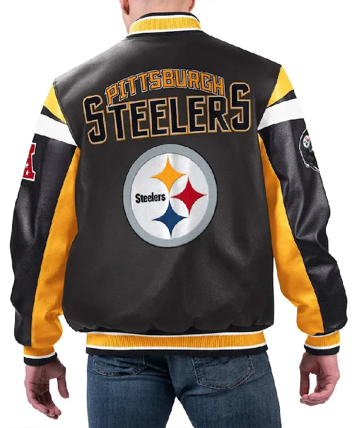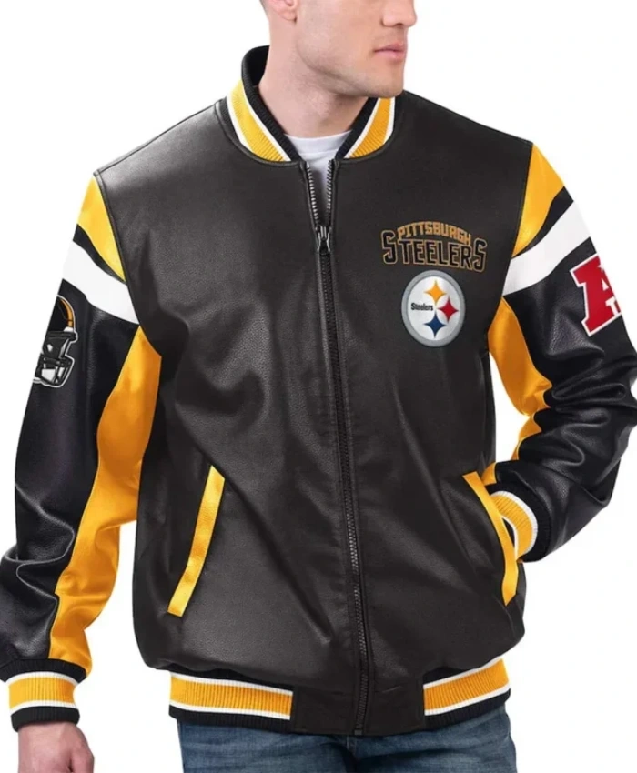 Buy Pittsburgh Steelers Full-Zip Varsity Black and Yellow Leather Jacket