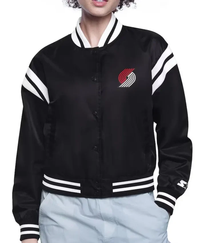 Portland Trail Blazers Printed Logo Varsity Satin Jacket