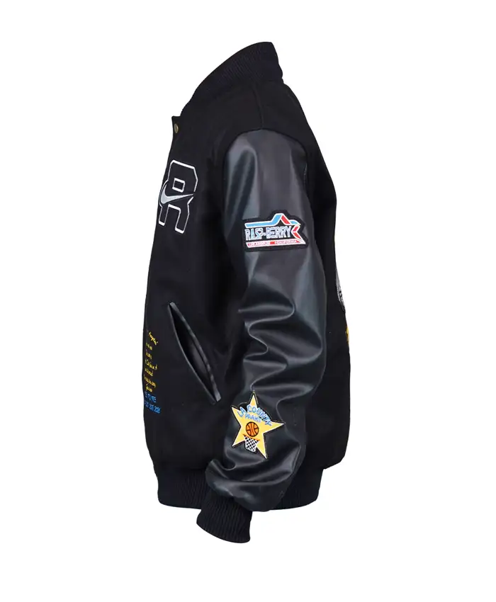This Raspberry Hills x Nike collab varsity is straight fire for streetwear fans. Black wool outer durable but not bulky leather sleeves give it that high-end touch viscose lining super soft and smooth no itch at all. Rib collar and cuffs snug to block wind snap-tab buttons quick and secure easy on/off. Two outer pockets one inner perfect for phone wallet keys. Relaxed fit true to size medium was ideal for me layers great over hoodies or tees without feeling restricted. Arrived surprisingly fast no customs hassle packaging clean already getting compliments on the Nike collab details every time I step out. Quality feels legit worth the price for All-Star weekend vibes.