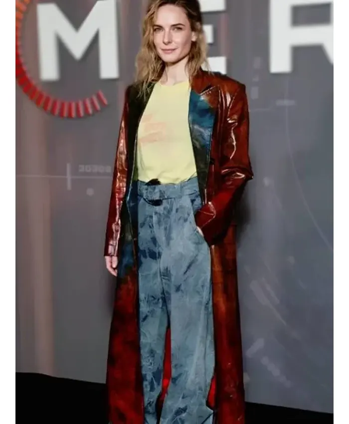Interestingly, it is also crafted from genuine leather. The Rebecca Ferguson Mercy London Photocall Coat carries a rich texture that feels smooth yet strong. Well, the soft viscose lining inside adds day-long comfort. It’s all about being both stylish and easy to wear. Moreover, the warm brown shade brings depth and character, allowing it to pair beautifully with both casual and refined outfits.