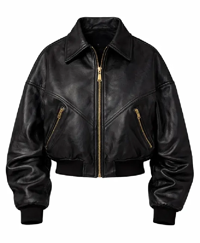 Rihanna Black Oversized Rider Leather Bomber Jacket For Women’s