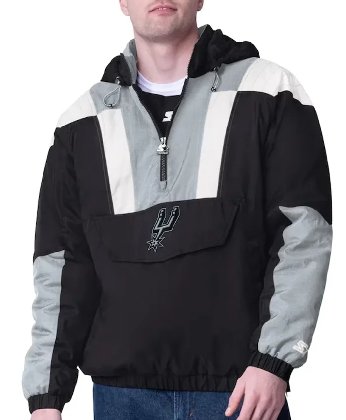 San Antonio Spurs Charger Pullover Half-Zip Black/Silver Jacket