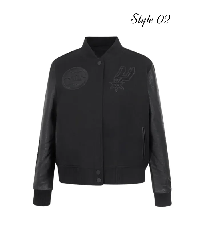 San Antonio Spurs Triple Black Varsity Wool/Leather Jacket