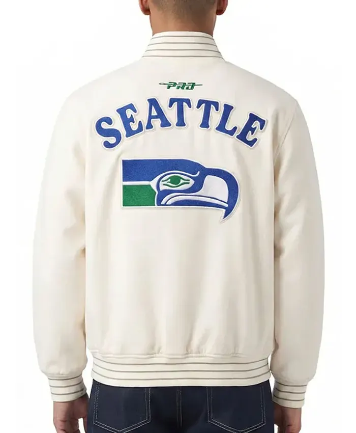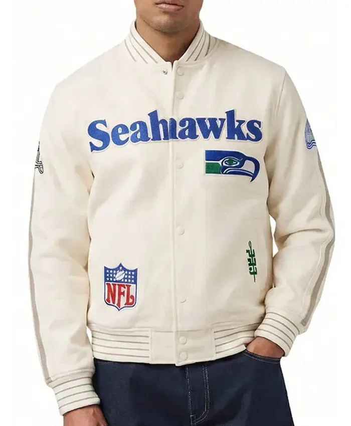 Ever wondered what it feels like to carry the thrill of the Super Bowl wherever you go? The Seattle Seahawks 2026 NFL Varsity Jacket from Seattle Seahawks Jackets Collection brings that excitement into your everyday life. Moreover, it is also inspired by the team’s iconic 2026 season. This cream varsity jacket reflects championship energy and clean style. And a sense of pride that every fan will recognize. So, if you’re heading to the game, meeting friends, or just stepping out in style. This jacket keeps your look fresh and unmistakably sporty.