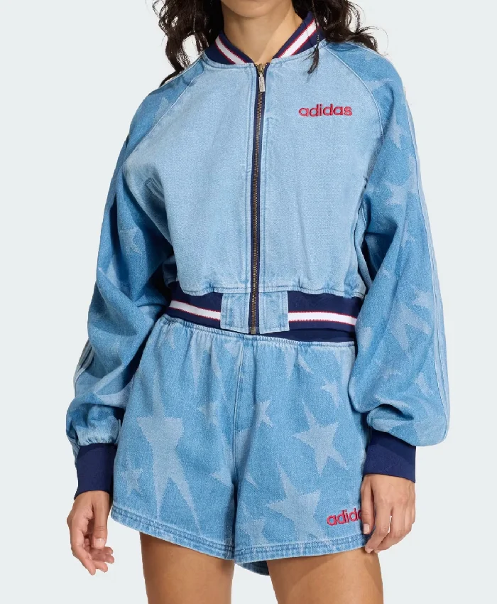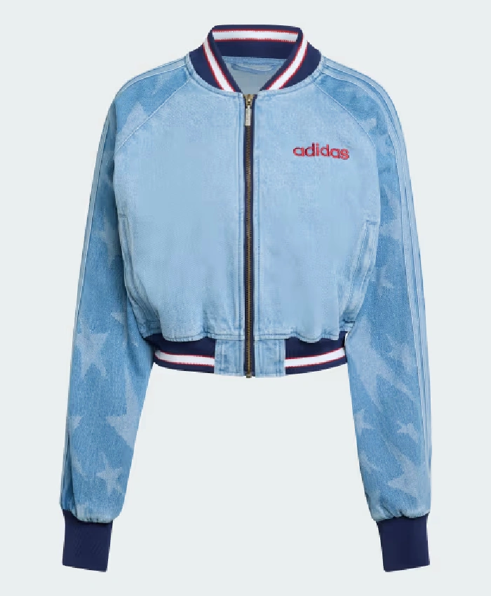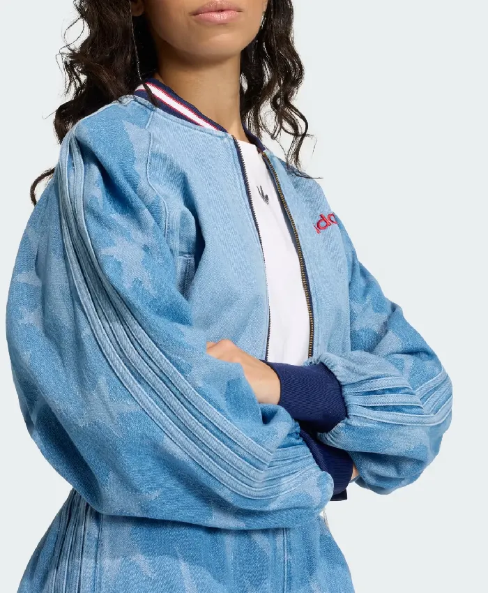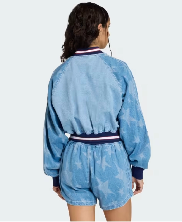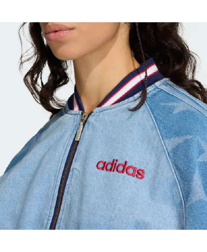 SST Denim Graphic Varsity Bomber Jacket