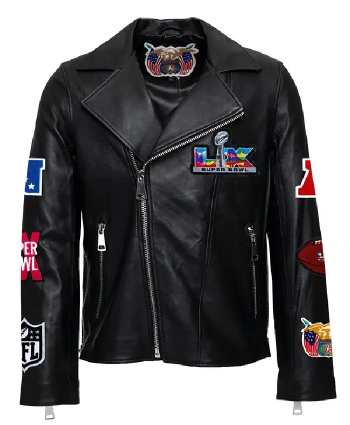 Super Bowl 2026 Black Leather Motocross Jacket