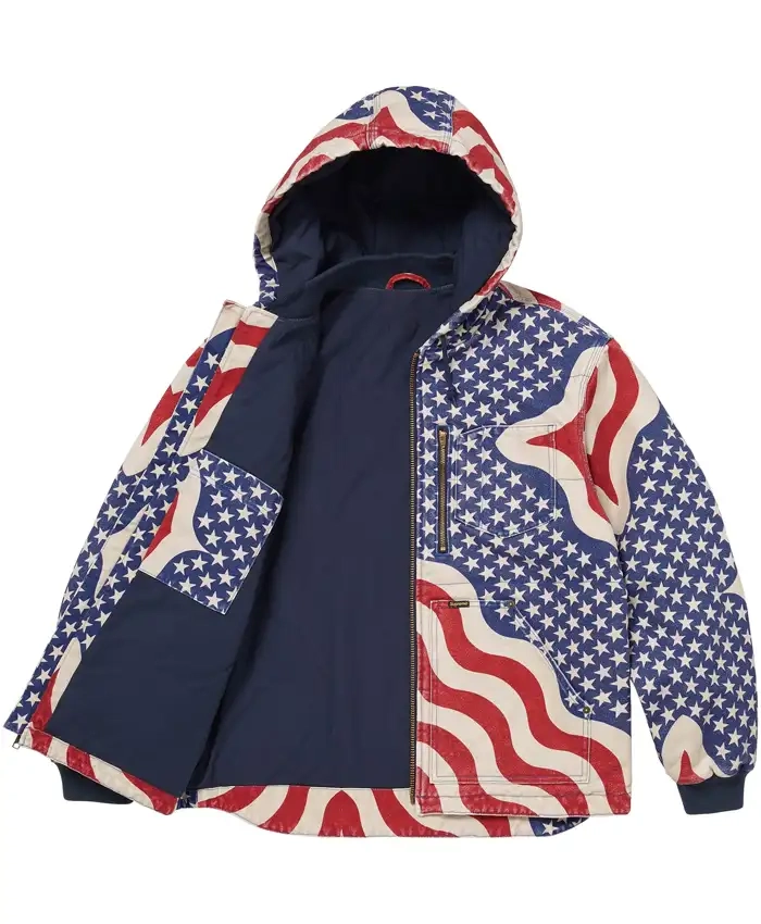 Shop Supreme SS26 Flag Quilted Zip-Up Hooded Jacket For Men and Women