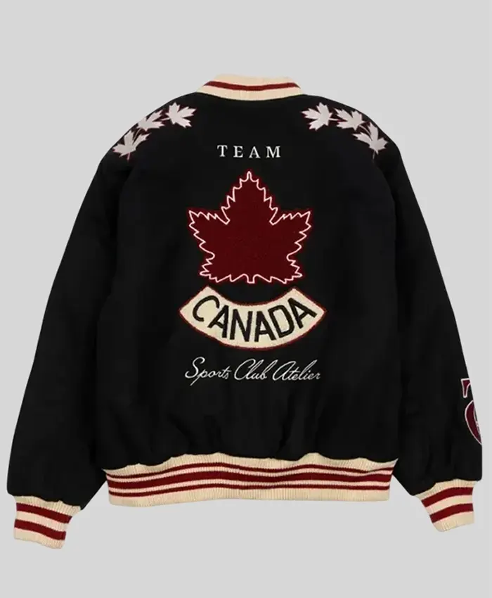 SCA x Hockey Canada Leaf & Legacy Sports Club Atelier Black Varsity Bomber Jacket
