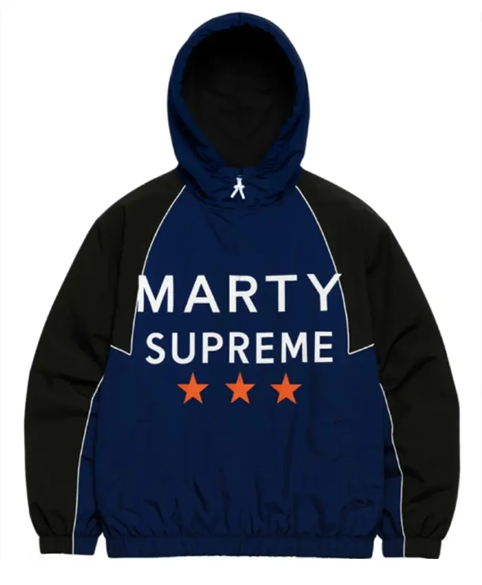 Marty Supreme Tom Brady Black and Blue Hooded Jacket