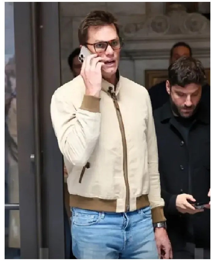 Tom Brady Super Bowl 2026 Beige Bomber Jacket
