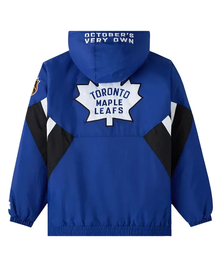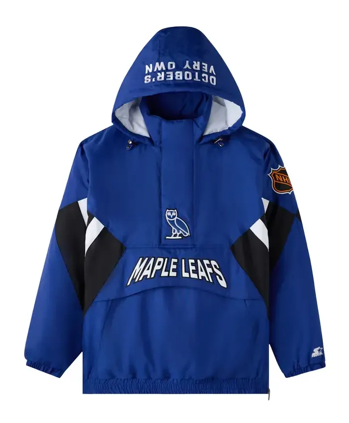 This jacket is everything a Leafs fan needs! Royal blue color rich and team-true, pullover easy on off, lining incredibly soft no scratchiness. Elastic cuffs block cold perfectly, pockets practical (inside ones great for wallet during games). Hood adjustable feel when up. Fits true (medium spot-on). OVO branding subtle and classy. Wore it to a game and felt the pride. Highly recommend worth every penny!