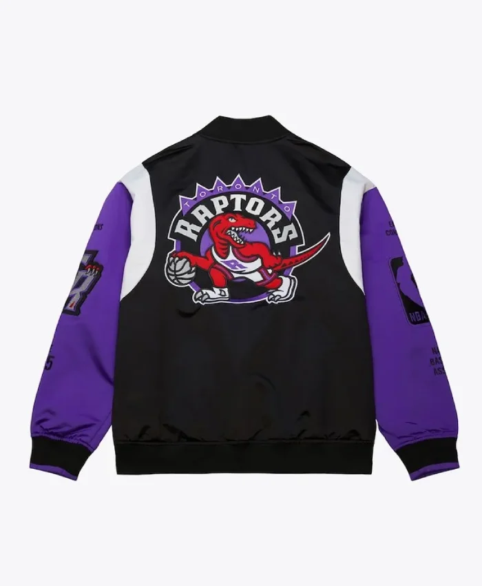 Toronto Raptors Team Origins Full-Snap Satin Black and Purple Jacket