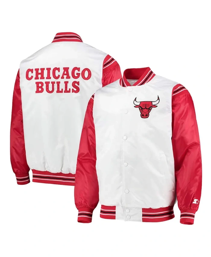 White/Red Chicago Bulls Renegade Varsity Satin Jacket
