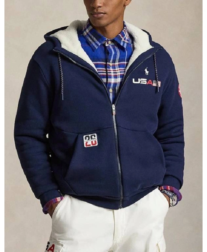 Recreation – Team USA Men’s Milano Cortina 2026 Winter Olympics Fleece Sherpa Blue Hoodie