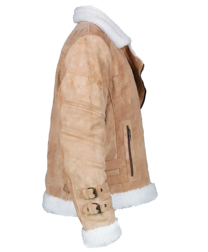 This Womens Brown Suede Biker Fur Jacket is made from high-quality suede leather, giving you a nice mix of softness and durability. It’s just right for daily use or when you’re looking to add a little flair. The shearling lapel collar really brings a nice touch of elegance, doesn’t it? Full-length sleeves with shearling cuffs add warmth and a nice touch to the look. The front zipper works really well and is sturdy, so you can wear the jacket open or closed, depending on the look you’re going for.