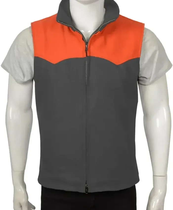 This John Dutton Yellowstone vest is badass. Cotton wool blend warm viscose lining soft stand collar sharp zipper closure easy. Waist pockets handy sleeveless perfect layering over shirts. Grey orange colors rugged look true to size large fit great no bulk. Wore on cooler evenings compliments on the ranch vibe quality solid fast shipping.