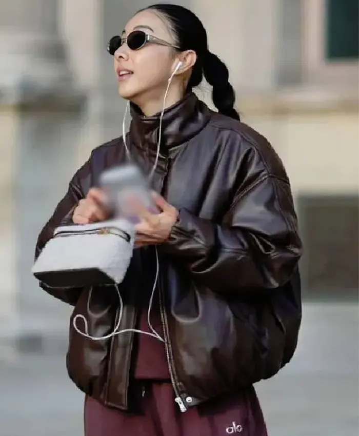 Yuwei Zhangzou Fashion Photo Session Bomber Leather Jacket